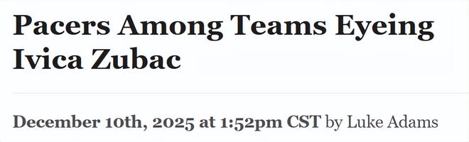 北京时间12月11日,据NBA记者西格尔报道,步行者队是本赛季有望追逐祖巴茨的球队之一。消息源透露,步行者近期已致电快船,询价这位中锋。