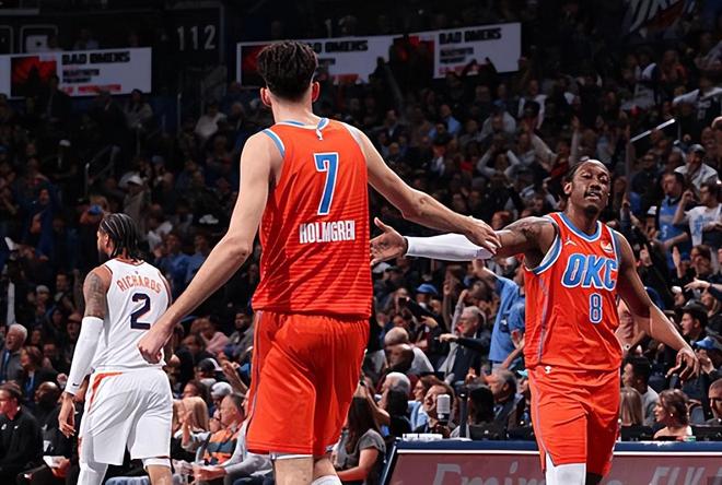 NBA杯赛四分之一决赛,雷霆坐镇主场迎战太阳。本场比赛之前,雷霆23胜1负稳居西部第一,这已经是NBA历史第三好的开局,仅次于69-70赛季的尼克斯和15-16赛季的勇士。同时,雷霆还保持着主场不败的战绩,他们还取得了一波15连胜;神挡杀神,佛挡杀佛了。