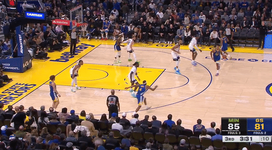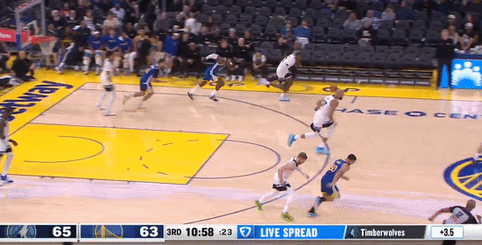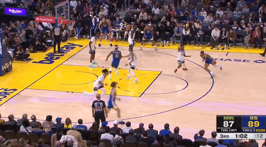 第三节,上来勇士连续失误,森林狼反击迅速一波6-0反超4分,随后勇士库里站出来连突带投止血,紧跟斯宾塞、巴特勒相继得分反超3分,随后森林狼戈贝尔、兰德尔强攻内线得分,勇士库里回应,但紧跟兰德尔、迪文琴佐相继三分领先6分,随后森林狼进攻断电,勇士穆雷站出来连得4分,紧跟波斯特、巴特勒相继得分,一波10-0再度反超4分,三节结束,勇士91-88森林狼。