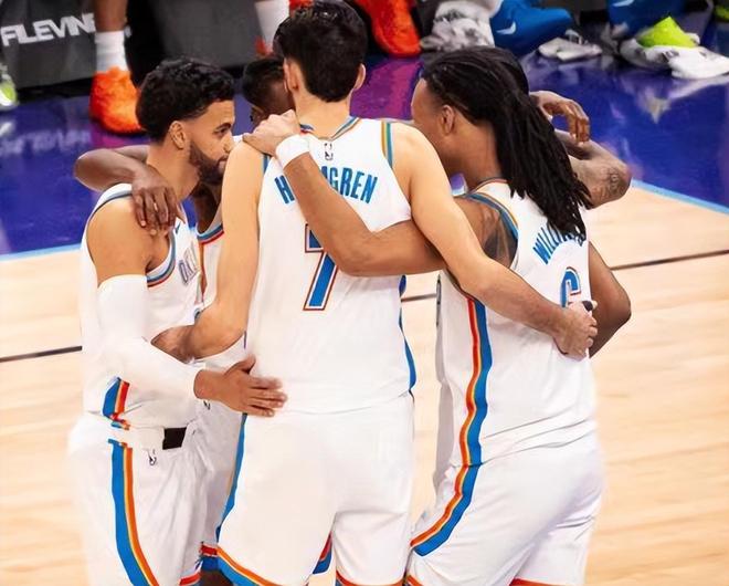 卫冕冠军雷霆的位置不可撼动,今天在缺少了亚历山大的情况下,客场131-101轻取爵士,豪取15连胜,霍姆格伦和杰伦-威廉姆斯合砍了50分,雷霆也成为NBA历史第三支23胜1负开局的球队,另两支分别是15-16赛季的勇士队(最终73胜9负)和69-70赛季的尼克斯队(最终60胜22负)。