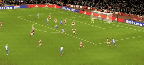 第14分钟,布莱顿的传球被抢断,萨卡送出助攻,厄德高打近角得手,枪手早早取得领先。