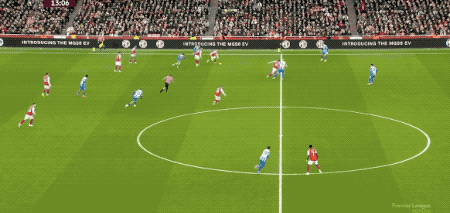 第30分钟,因卡皮耶送出妙传,萨卡停球不太舒服,但迅速调整后依旧强行进入禁区传球,防守球员将球解围。