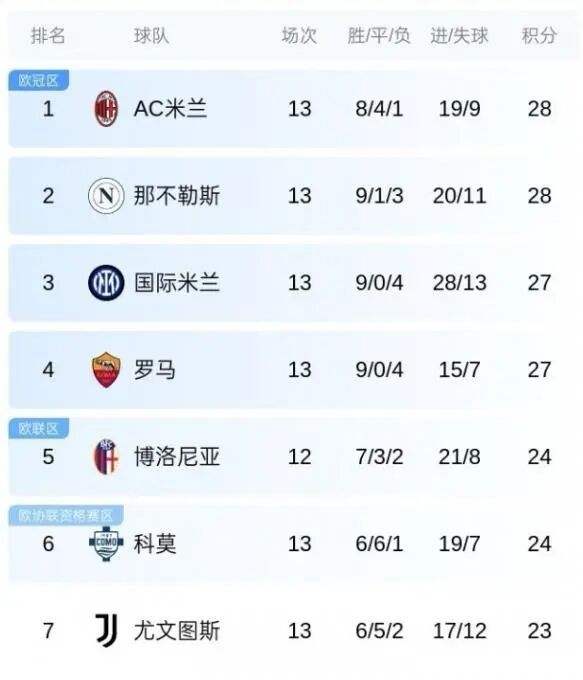 数据统计显示,这也是意甲联赛连续第2个赛季在13轮过后,前四名分差仍在2分以内。而此前30个赛季都从未有过如此情况。