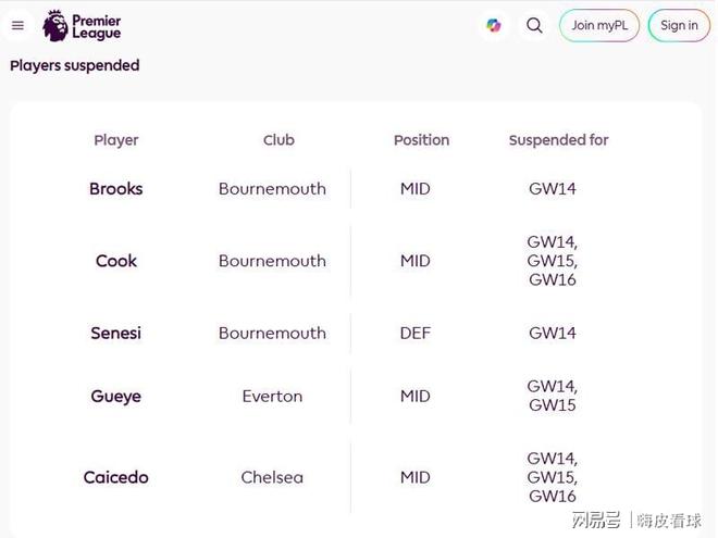 英超第14轮,在本周中进行,英超官方也宣布了最新的停赛名单,其中伯恩茅斯有三名球员需要停赛,切尔西核心停赛三场。另外,还有多名球员已经身背4张黄牌,再拿一张就要自动停赛。