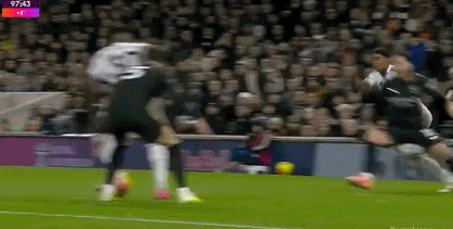 第98分钟的读秒阶段,富勒姆险些上演绝平好戏。乔希-金的射门,已经射穿了多纳鲁马,但就在皮球即将滚入球门前,被格瓦迪奥尔门线解围。而在经历这一惊魂时刻后,曼城颇为艰难以5-4险胜。
